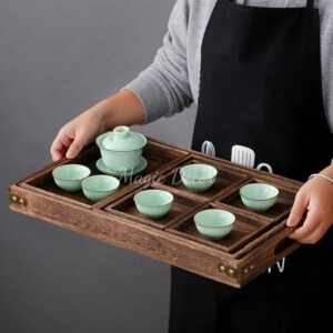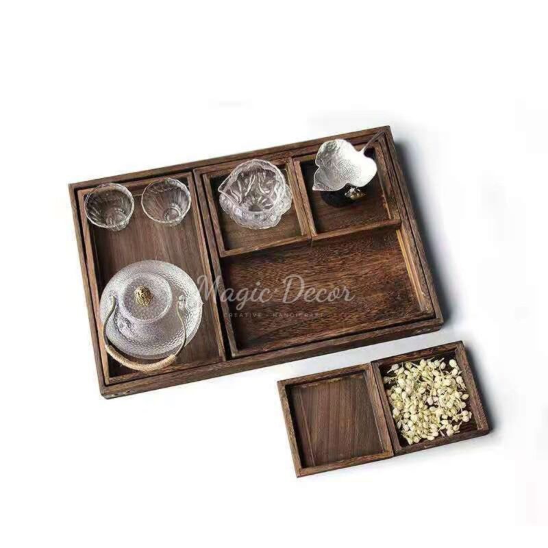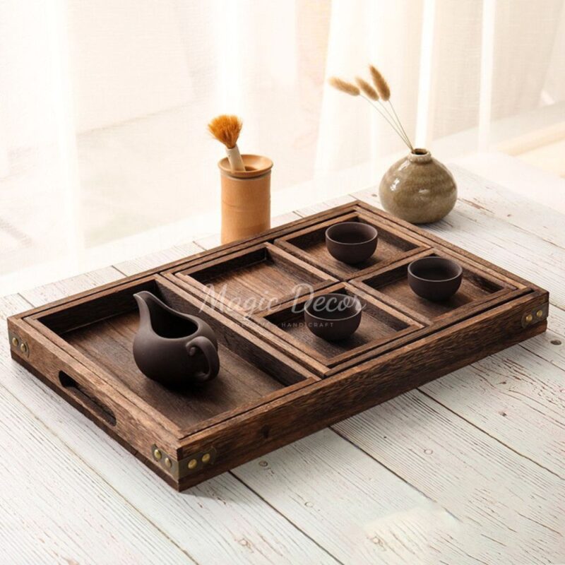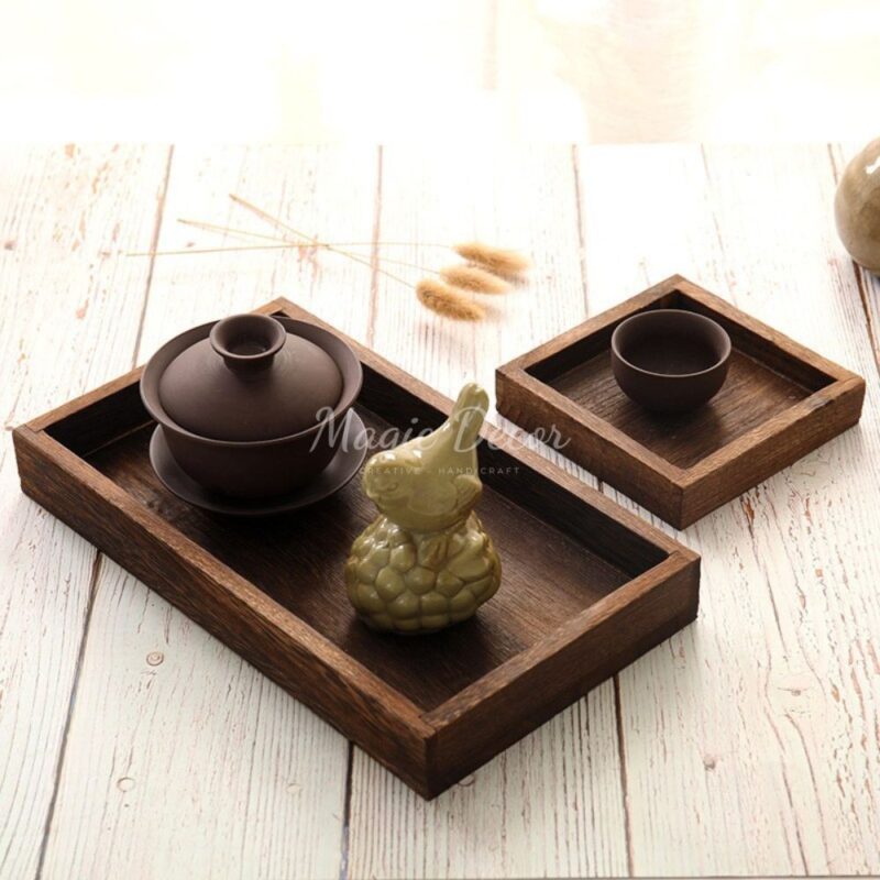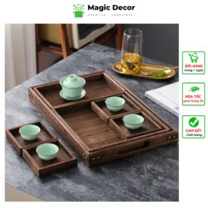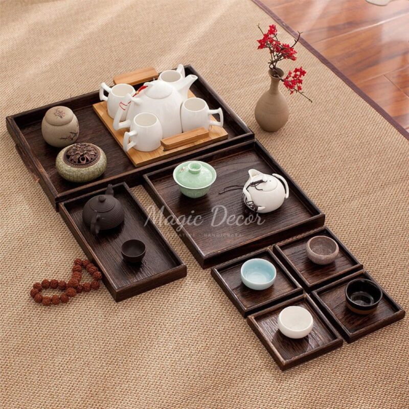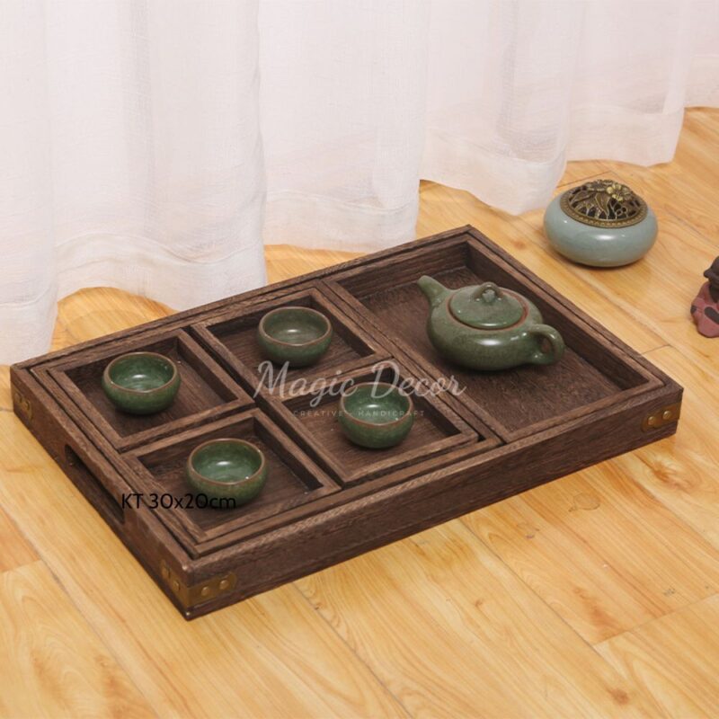 Khay trà gỗ óc chó 25x38cm hình chữ nhật cao cấp đựng ấm chén trà