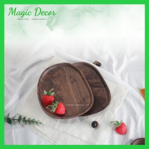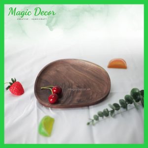 Đĩa gỗ lệch 16x18cm decor trang trí đồ ăn chất liệu gỗ óc chó cao cấp