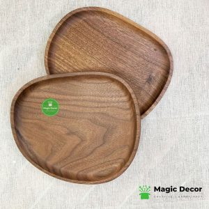 Đĩa gỗ lệch 16x18cm decor trang trí đồ ăn gỗ óc chó cao cấp