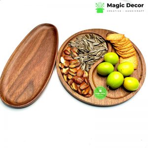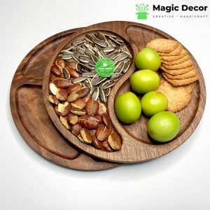 Công dụng đĩa gỗ trang trí hình tròn chia 2 ngăn gỗ óc chó