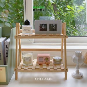 Kệ gỗ mini để bàn 2 tầng decor trang trí tiện lợi cực chill